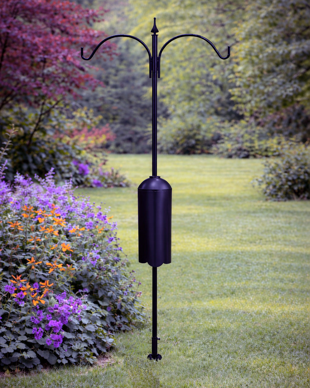 This bird feeder pole system gives you a simple, reliable way to hang two feeders while keeping squirrels away.