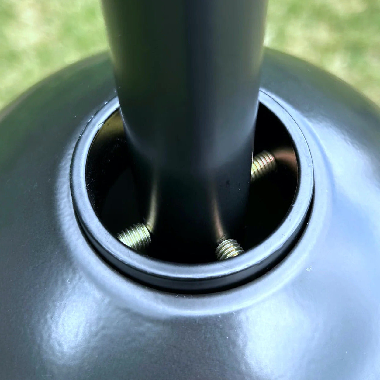 Setup is quick and straightforward. The included ground twister screws 20 inches into the ground, so no concrete is needed. Once installed, the pole reaches full height using the built-in set screw and turning hole.